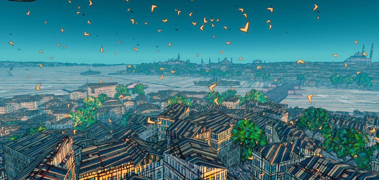 - İstanbul’un büyüleyici silüetinde çok katmanlı bir yolculuğa çıkmak mümkün oluyor. Şehrin tarihi dokusu, sanatçının özgün bakış açısıyla yeniden yorumlanıyor.
